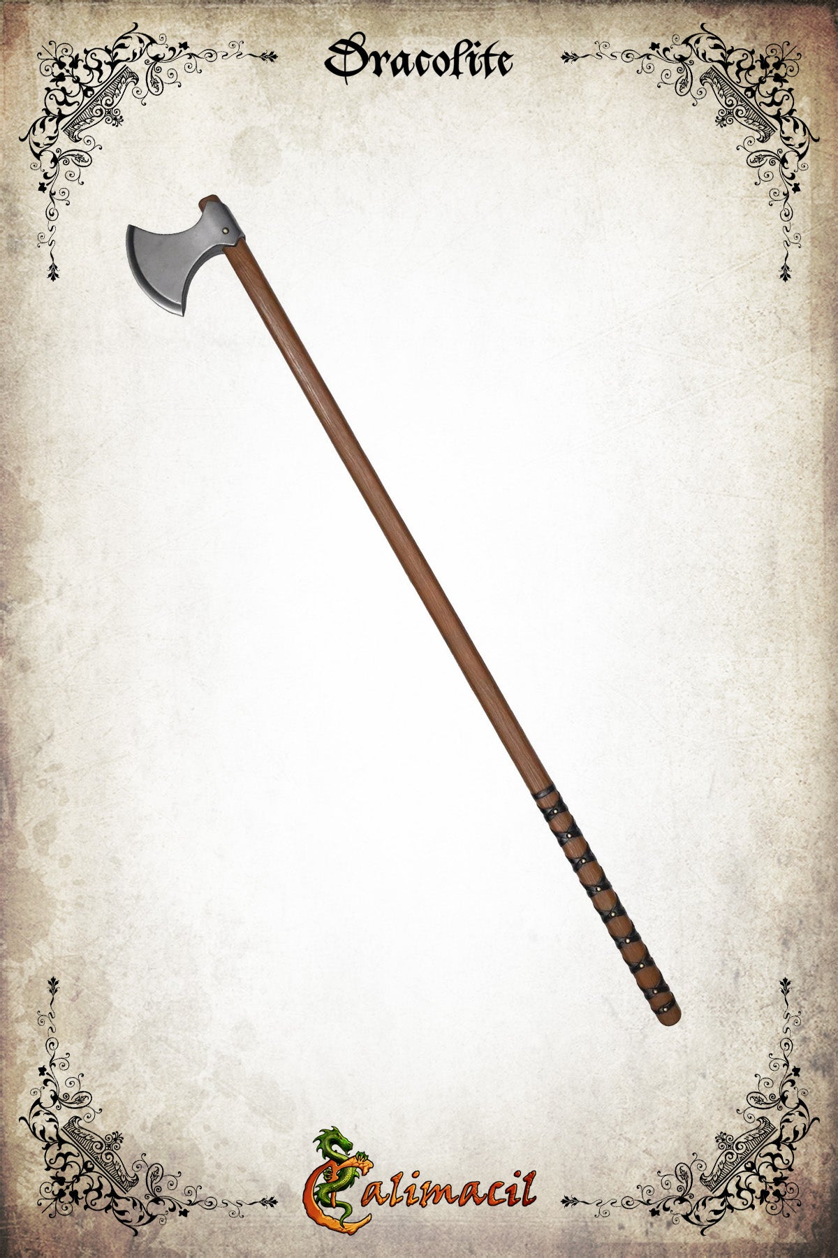 La Dane Axe de Calimacil s’inspire des célèbres grandes haches danoises utilisées par les guerriers nordiques, tout en étant conçue spécifiquement pour offrir une sécurité optimale lors des jeux de rôle grandeur nature (GN).