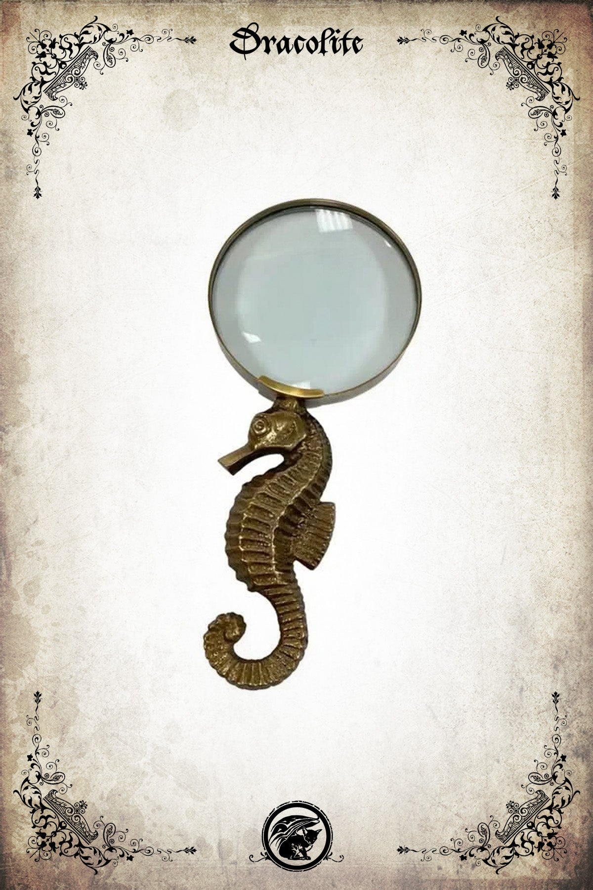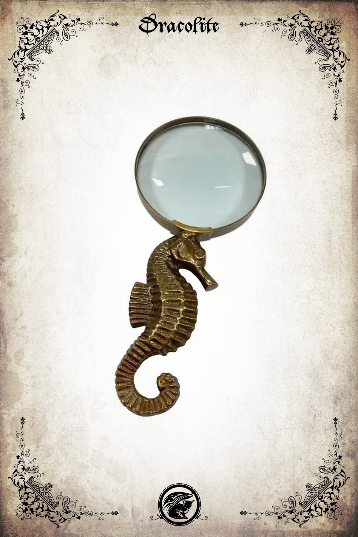 This antiqued brass 2x magnifying glass features a solid brass seahorse handle with beautiful detailing. It is lightweight for convenient use and makes a beautiful display piece. It makes a unique and beautiful decorative item or gift in the nautical, coastal, or historical field. A beautiful gift for a marine life lover!