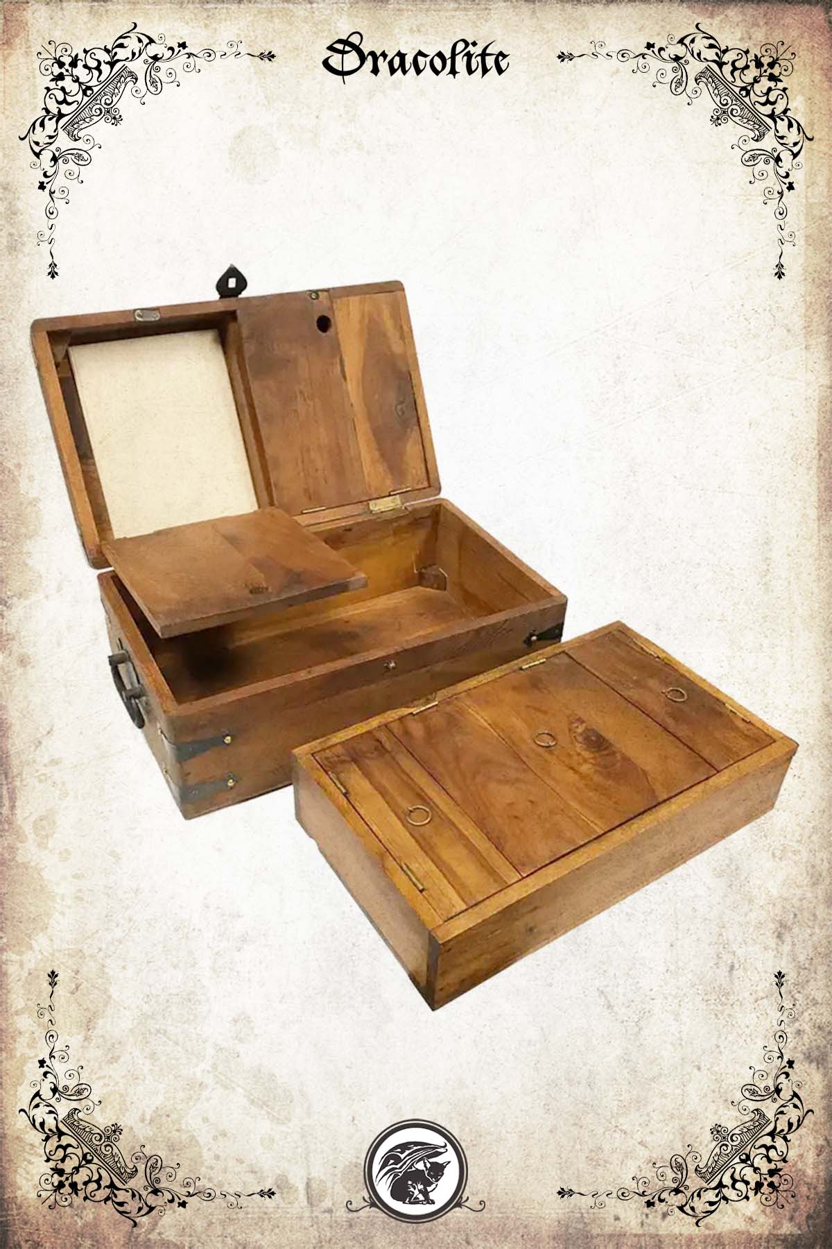 Ce magnifique coffret d’écriture en bois de teck évoque ceux qu’un capitaine de navire aurait utilisés au début des années 1700. Cette boîte constitue un cadeau parfait pour un passionné d’histoire ou de nautisme, ou pour un amateur d’écriture à la plume et à l’encre.