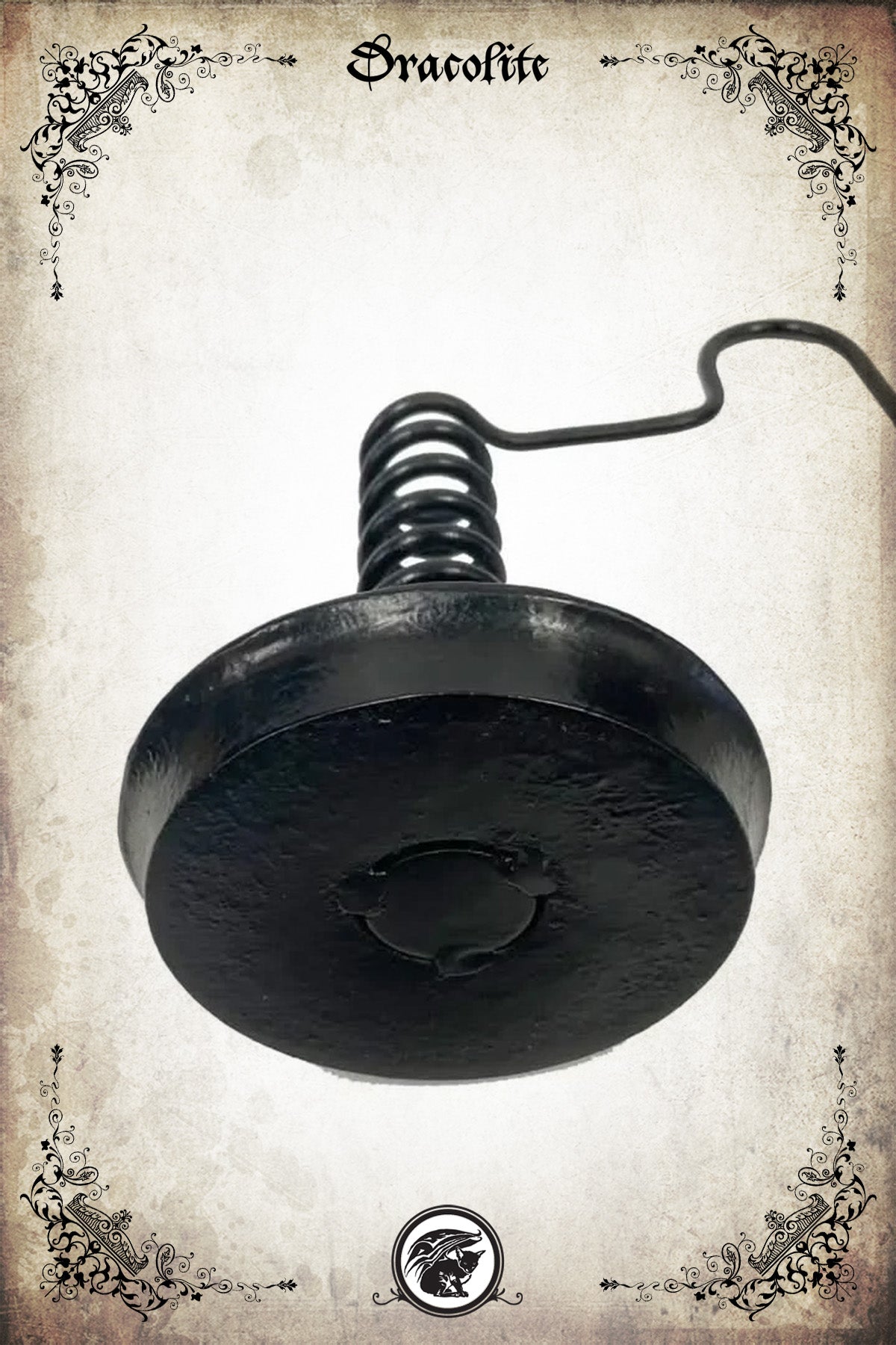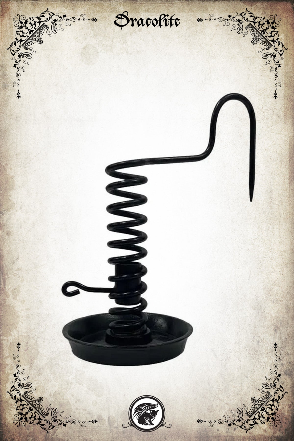 Our sturdy and robust iron courtyard candlestick features a sturdy handle for carrying and a wide base for collecting wax. The candle height is adjusted by rotating the candle cradle up or down on the spiral center shaft. The candle holder accommodates a 7/8" candle (candle not included). A superb early table decoration.