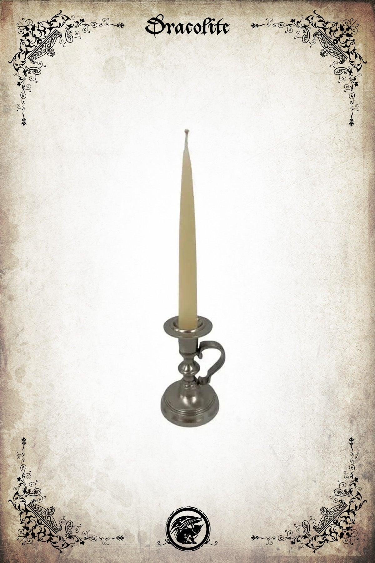 Notre porte-chandelle colonial en laiton plaqué étain, fidèle à un modèle antique, s’adapte parfaitement à tout décor historique. Il accueille une bougie conique de 3/4" (non incluse) pour une ambiance authentique.