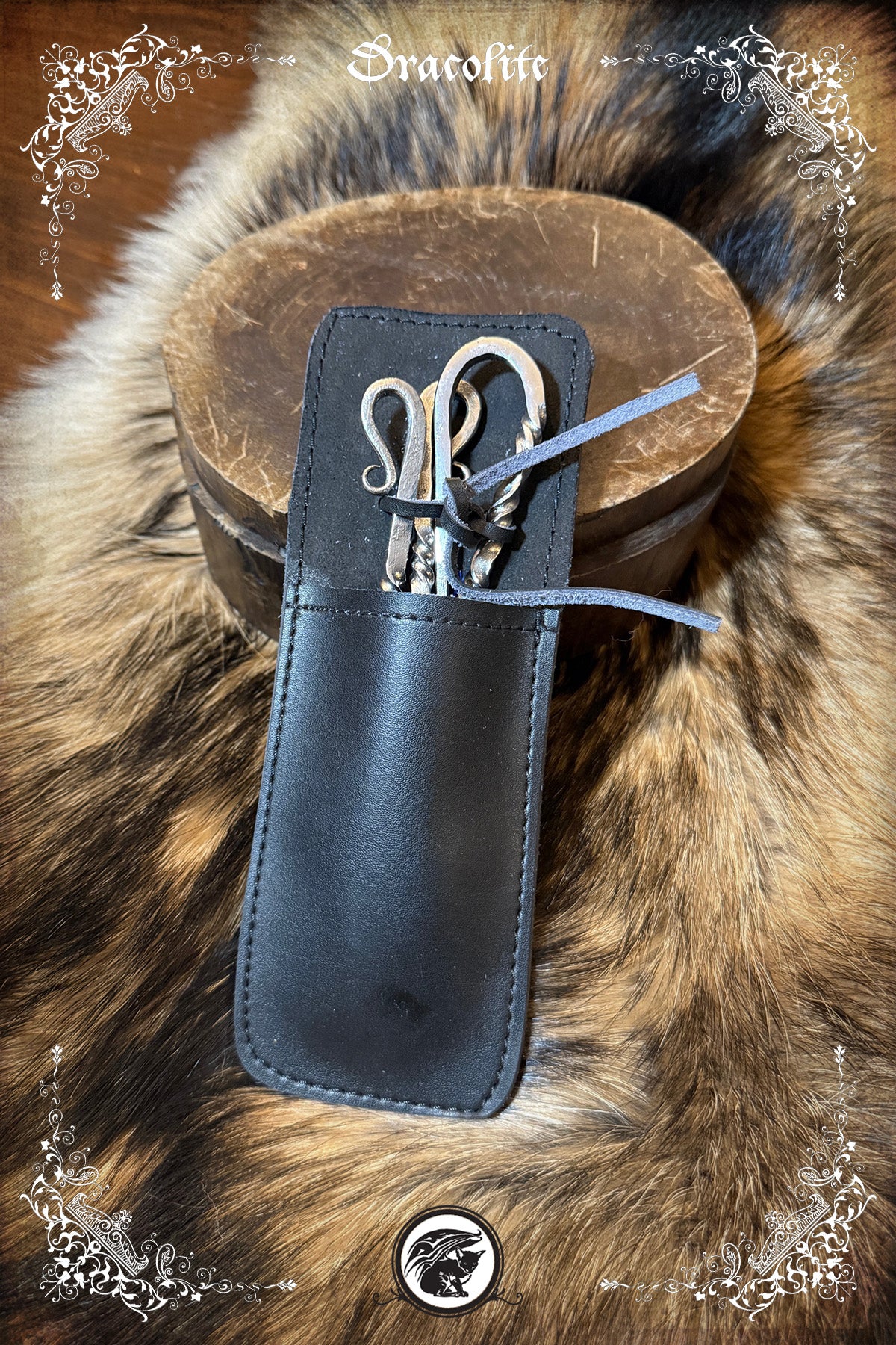 Les ustensiles sont présentés dans un étui en cuir noir, simple mais résistant, conçu pour protéger vos outils tout en les gardant organisés et faciles d’accès. Cet étui est idéal pour les passionnés de GN, les reconstituteurs, les amateurs de culture viking ou toute personne souhaitant remplacer les ustensiles jetables par des accessoires durables et esthétiques autour du feu de camp.